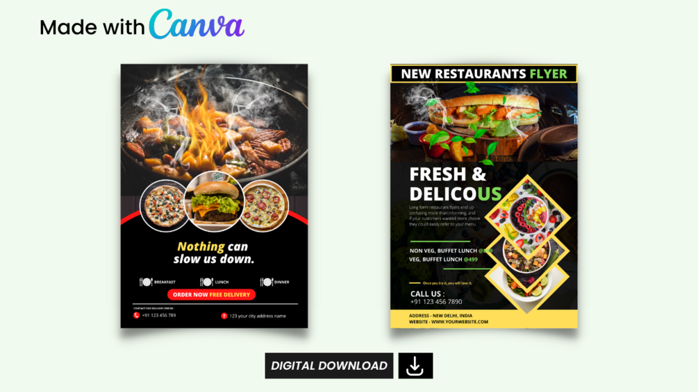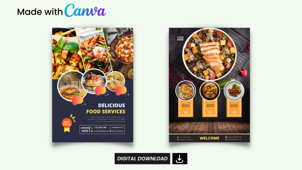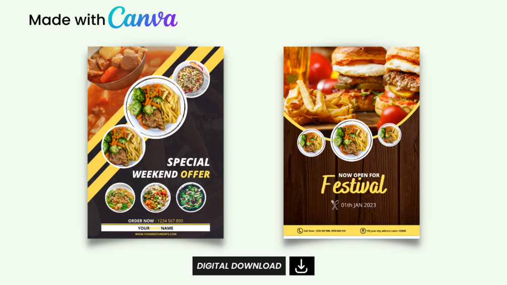 Top 6 Digital Restaurants food flyer templates bundle made in Canva - Designed by indesigner9
